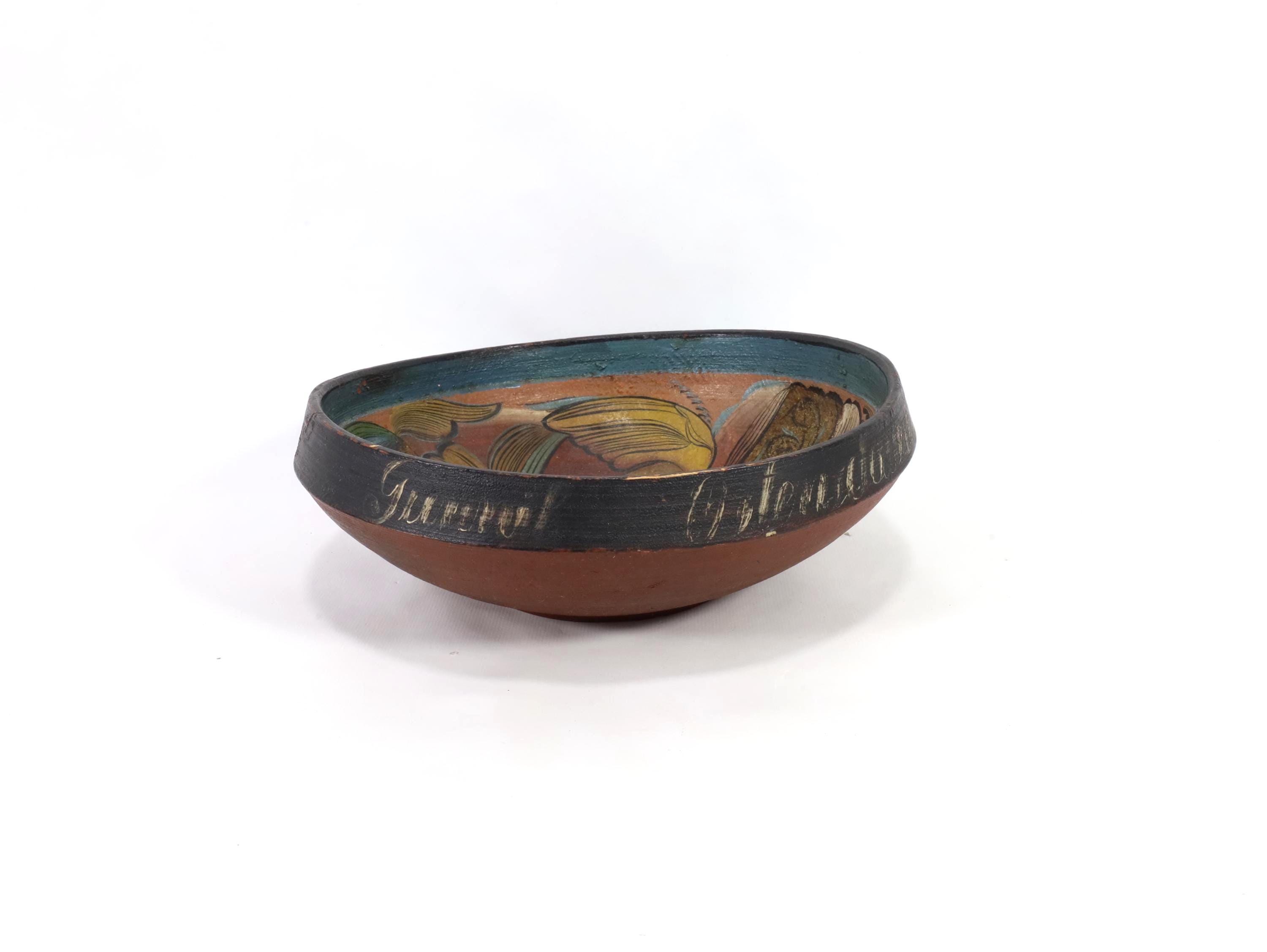 This Norwegian folk art beer bowl from Bergen, dated 1857, is a testament to the rich cultural tapestry of Norway. Its surface is graced with traditional rose painting, artfully rendered with exquisite detail by a practiced hand. The vibrant florals tell stories of the Bergen region, capturing the essence of its heritage and charm. As you admire this artifact, the subtle imperfections acquired over more than a century lend it a stunning patina, whispering tales of gatherings and festivities long past.