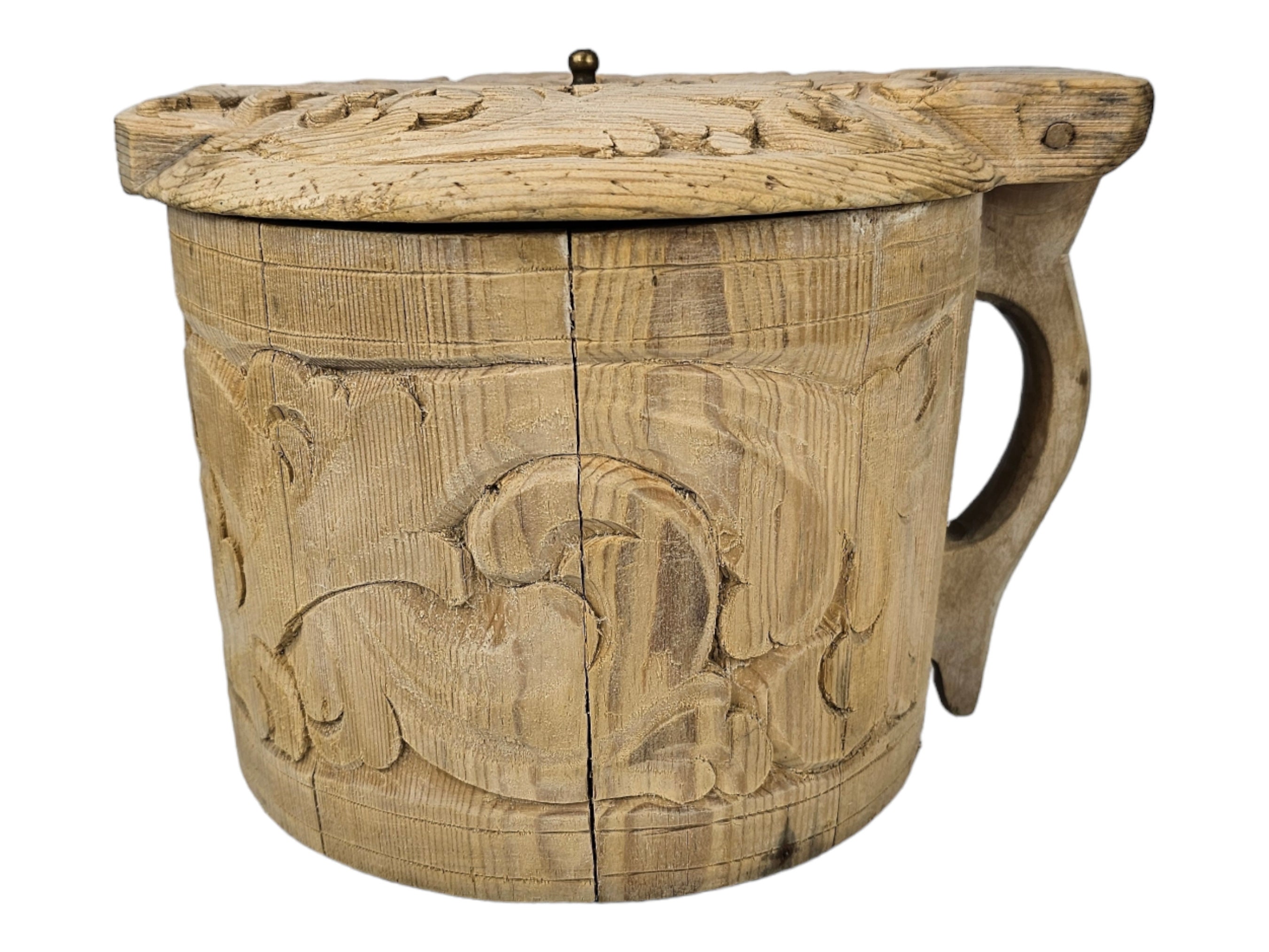 This Fantastic Antique Beer Tankard is a true work of art! Hand carved in the traditional Norwegian Folk Art style, this unique drink vessel is a stunning piece that will make a statement in any collection.