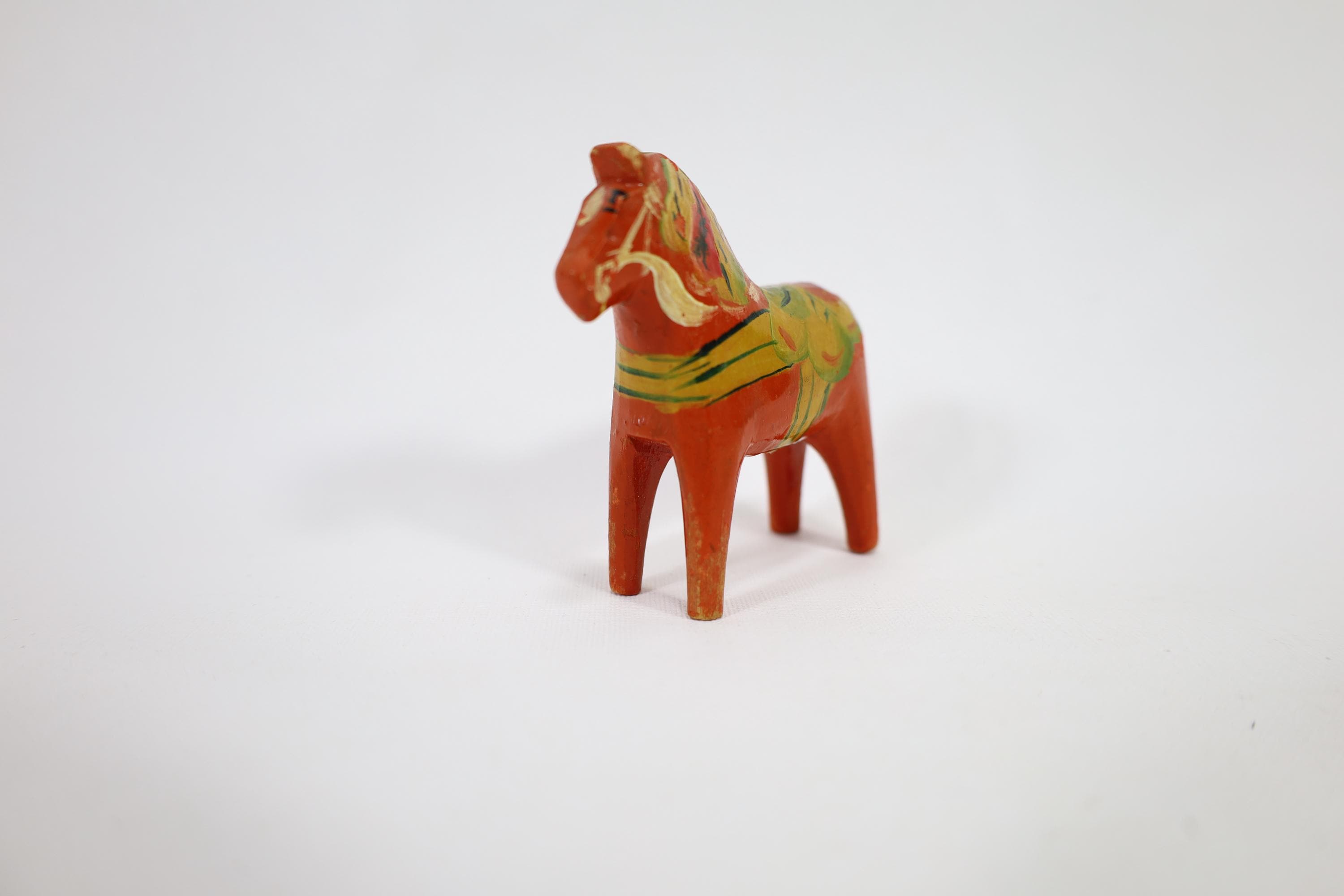 This charming Red Dala Horse is a beautiful vintage find from the early 1900s, carefully hand-painted on Swedish wood. Standing small yet full of character, this traditional wooden horse features intricate painted decoration that showcases its timeless allure.