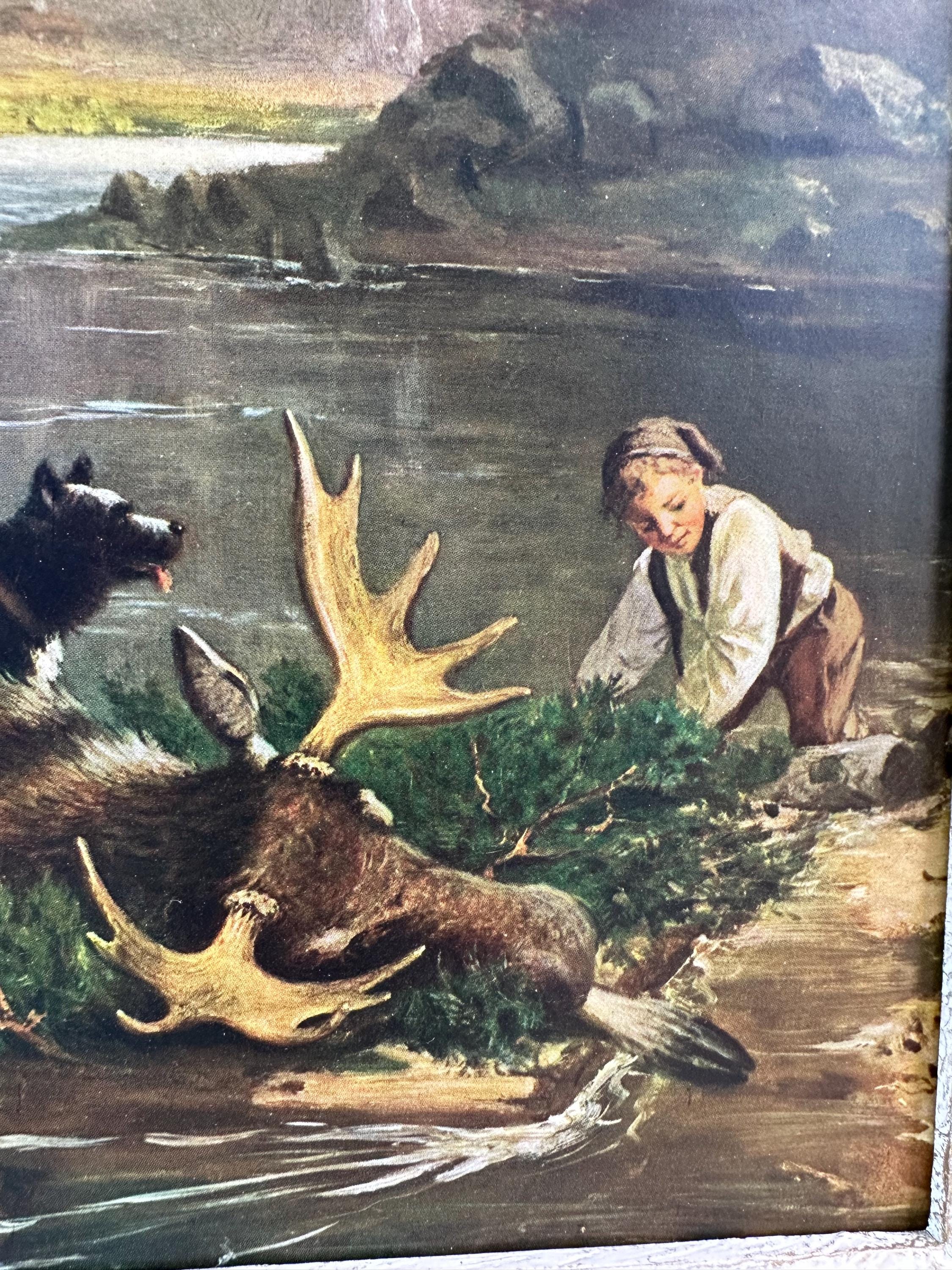 Introducing a unique vintage treasure, inspired by the renowned Norwegian painter, Carl Julius Lorck! This exquisite reproduction from the 1970s showcases Lorck's famous motif titled Hunters in Østerdalen. Known for his exceptional talent and attention to detail, Lorck's captivating work brings the beauty of nature and the thrill of the hunt to life.