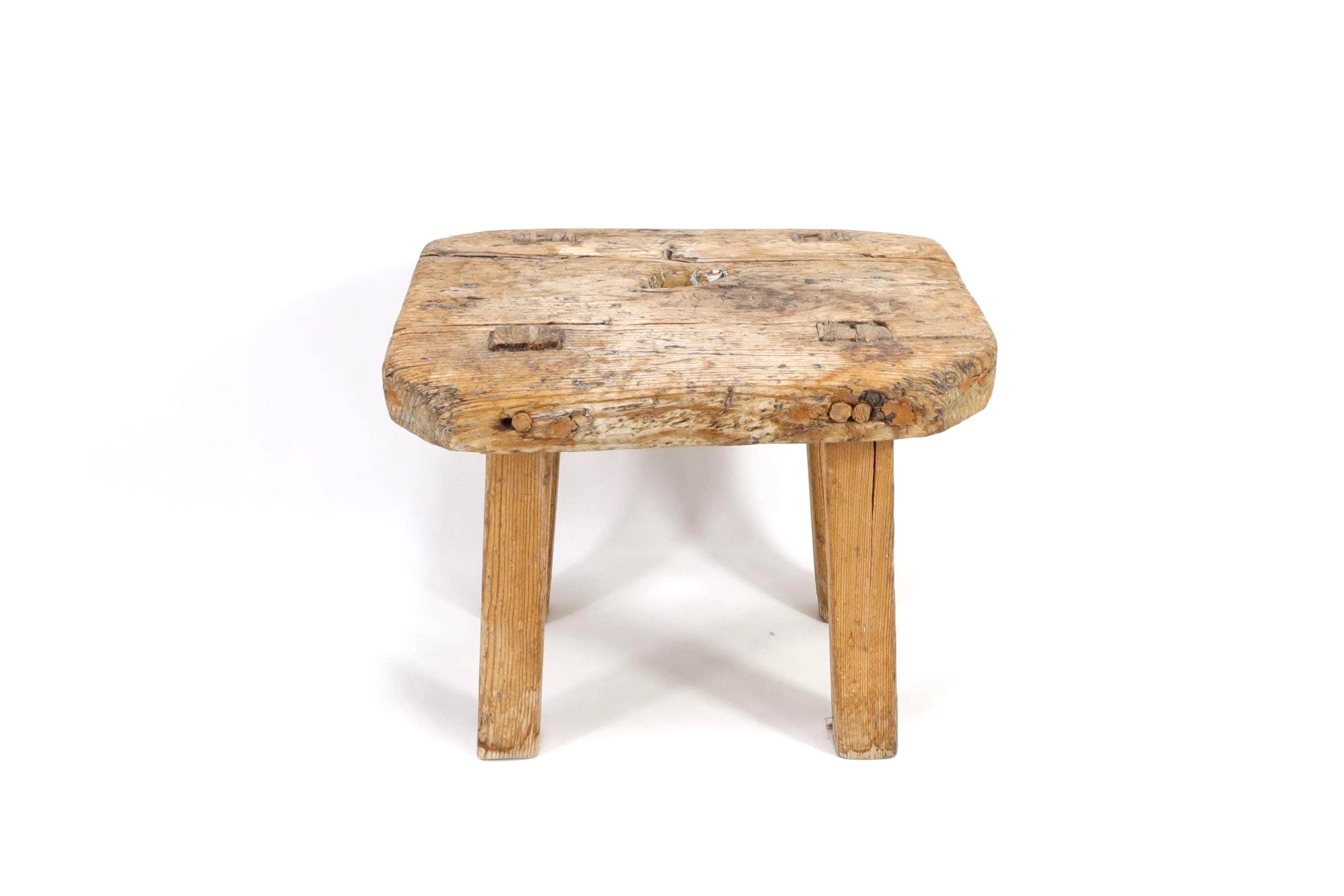 This antique stool is from the 19th century and has a stunning rustic and primitive patina.