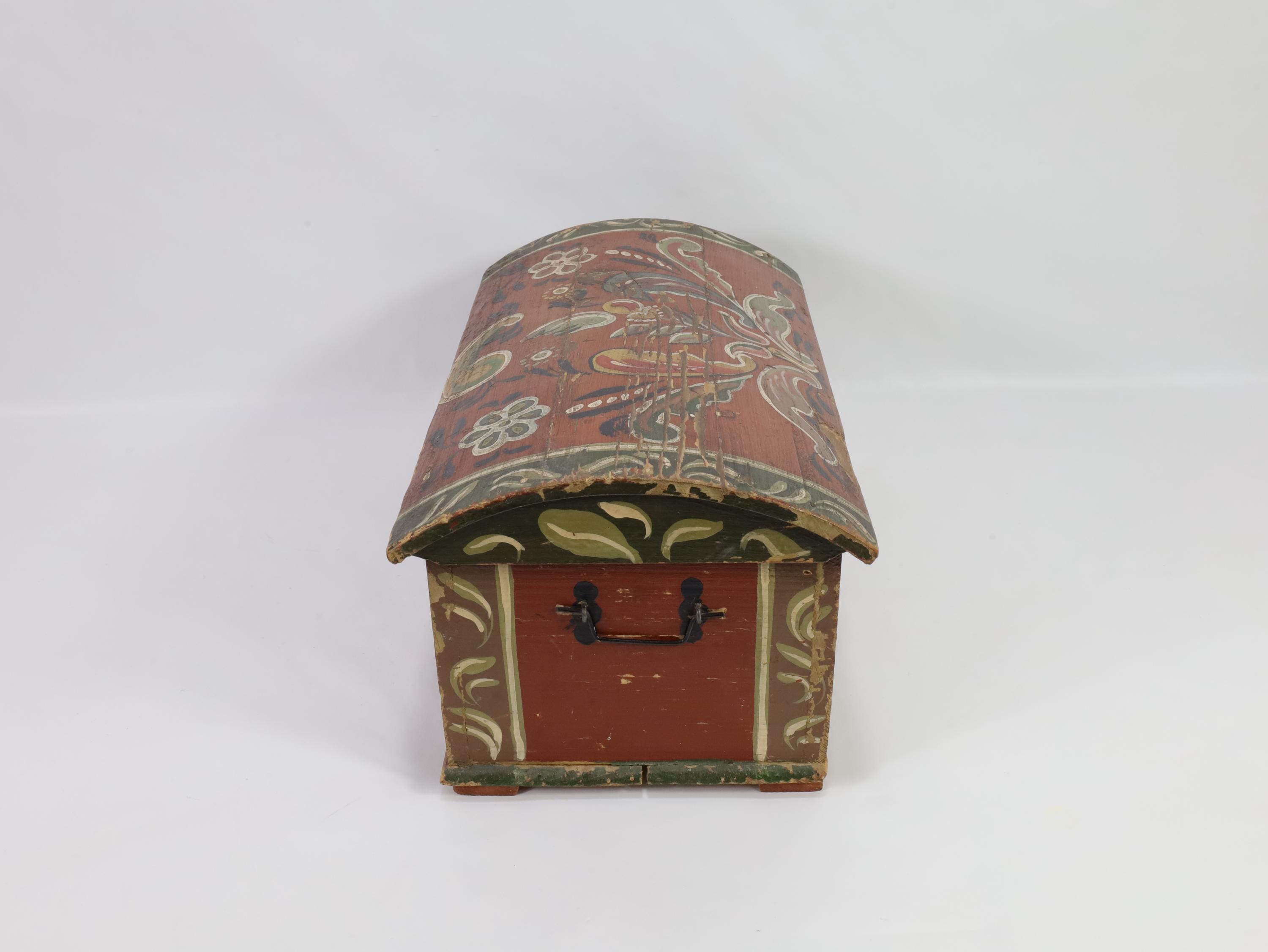 Condition: the box has worn rose paint and shows that it has been used.