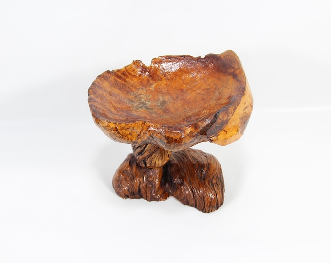 Vintage Exclusive Burl Bowl on Stand - Handmade Candy Bowl from 1960s - Centerpiece or Housewarming Gift